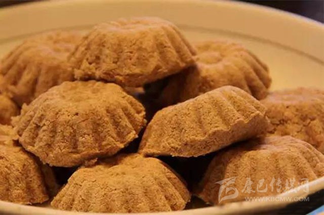 藏族酥酪糕是藏族的著名糕點,在藏族同胞的家里常用作款待客人的美味點心。而且它本身具有很好的保健功效,能夠在品嘗美食的同時又滋補身體。藏族酥酪糕食用起來奶味濃郁,十分受到不同年齡及族群的喜愛,其中還有多種對身體十分有益的材料,例如西藏人參果就是一種純天然無污染的滋補食品。酥酪糕是用提取過奶油后的乳白色淀粉(藏名曲熱)晾干后,用磨磨成粉末,拌入黃油(奶油)、白糖、角麻(人參果)、葡萄干、桃仁等,做成橢圓形、方形,表面有紅絲綠絲擺成圖案,表現(xiàn)吉祥、長壽,放入籠屜內(nèi)蒸熟,賓至可整塊獻上,或切成片狀。據(jù)說它有滋補強身之功效。