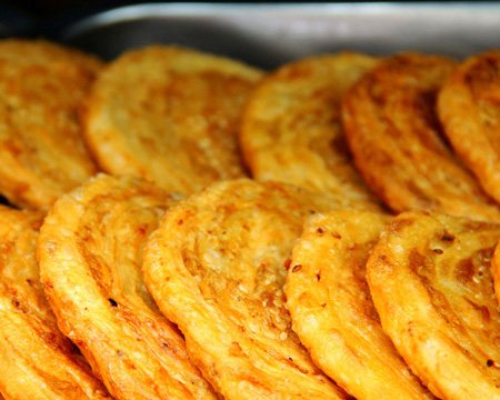 康定鍋魁別具風(fēng)味,馬市上清真寺對(duì)面,文昌廟(原回小校舍處)坎下鄭家的鍋魁全城聞名。品種有混糖鍋魁、油旋子、方方酥、糖鍋魁等,香酥甜俱佳,至今讓人回味。當(dāng)年福音堂(在今州委地段)前有小院壩,下接老陜街,常年有喇嘛三五或二三十坐于街沿,面前置二三大鍋魁售賣(mài)。人稱(chēng)此為“貢加肆”(藏語(yǔ)賣(mài)鍋魁地),其鍋魁泡而微甜可口,不少人前往購(gòu)食。還有“陜鍋魁”,爐城聞名。是一個(gè)操陜西口音的五十開(kāi)外漢子,背一背大餅,沿街叫賣(mài):“陜鍋魁”。其大餅軟嫩,綴以蔥花,入口清香喜人,北方大餅,素享盛名,“陜鍋魁”盡得其妙。人們聞其陜音,都去購(gòu)買(mǎi)。