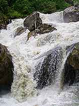 溝外交通與燕子溝大致相同,從南門關(guān)溝至兩河口14.5千米,在這里分做兩條路,一條往西南去牛園子和冰川,一條往西北去蟲草棚子(二號營地)和冰川。這里沒有食宿,道路艱險,馬不能通行,需要當?shù)叵驅(qū)А?/p>