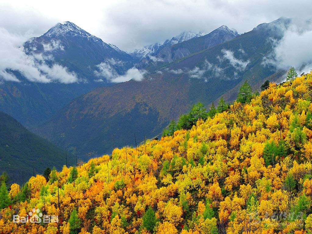 海拔5145米的俄初山在藏語里是“閃光的山”的意思。俄初山拉姆格林區(qū)是稻城最大的林區(qū)。雖然此山山勢平緩,但以廣袤的森林以及山上變幻莫測的風云讓人頓生敬畏之心。尤以每年10月的風景讓每一位來訪者如癡如醉。當十月的初霜降臨俄初山的山嶺峰谷時,雪線以下的林濤樹海正換上繽紛的秋之盛裝。此時的俄初山恰似一位待嫁的新娘:頭披圣潔的哈達,身著五彩的秋裝。在俄初山頂遠眺貢嘎日松貢布雪峰,景色十分壯觀。